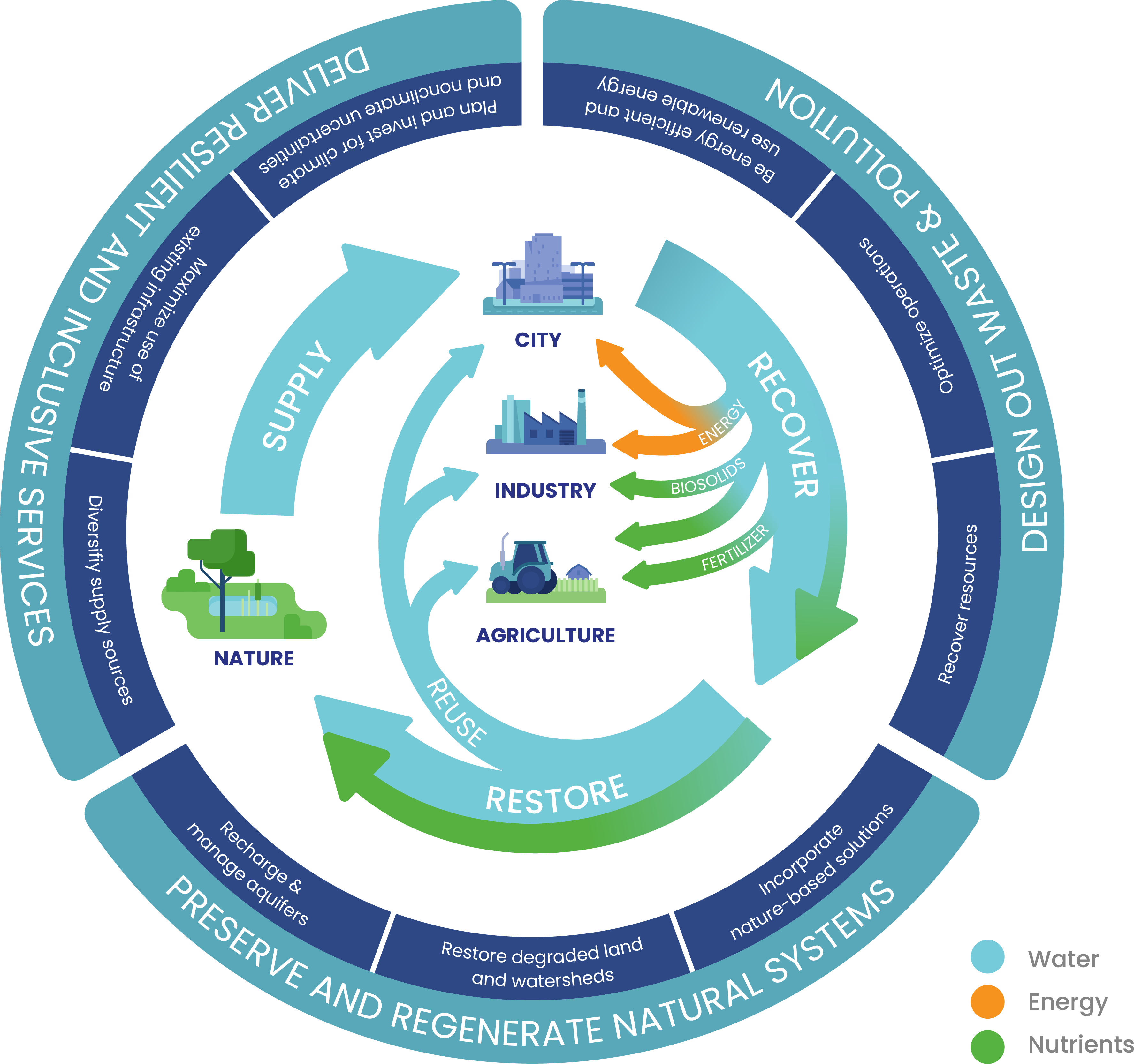 A circular and resilient water sector not only minimizes waste and negative environmental impacts, but also actively restores precious natural systems, recognizing their economic value and their importance for a sustainable future.